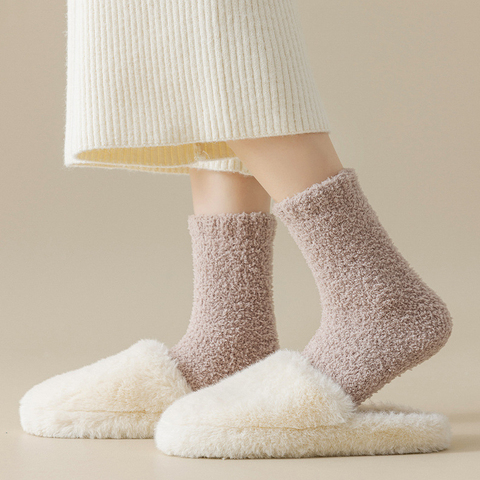 Mikrofiber yumuşak rahat orta buzağı çorap kaymaz termal çorap kabarık ekip uyku çorap kış klasik ev polar terlik çorap