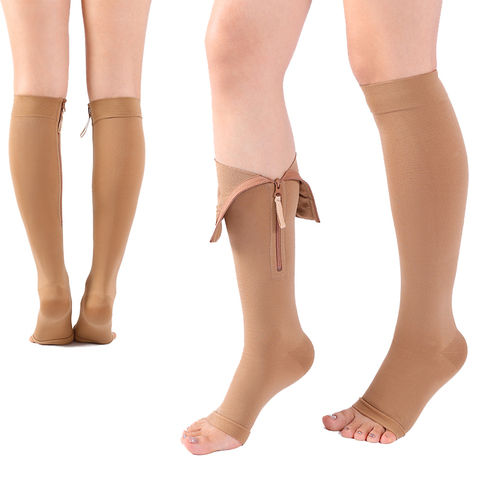 ถุงน่องรัดขาแบบมีซิป ความยาวถึงเข่า ป้องกันเส้นเลือดขอด สำหรับอาการบวมน้ำ ความดัน 20-30 mmHg ผลิตตามสั่งจากโรงงาน