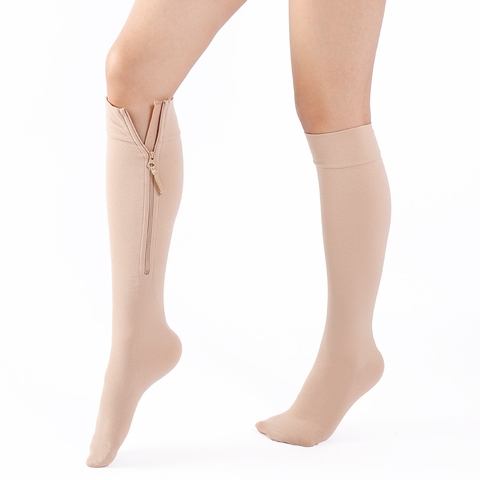 Компрессионные чулки-ботфорты с открытым носком на молнии, 20-30 мм рт. ст., для лечения варикозного расширения вен, фабричное производство
